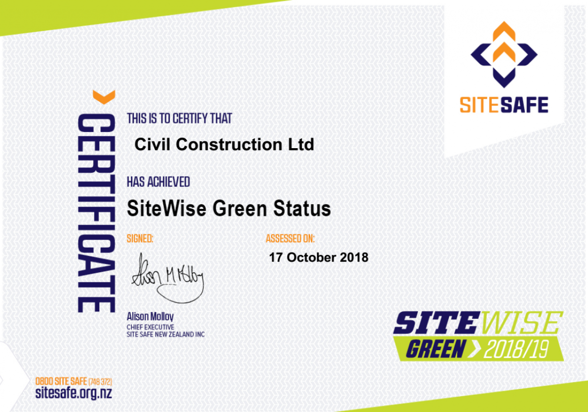 Civil Construction is a valued member of Site Safe New Zealand.