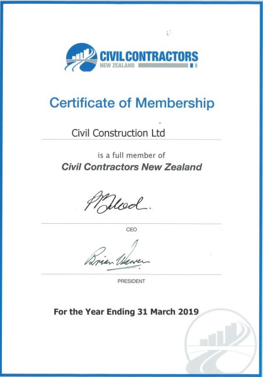 Civil Construction is a full member of Civil Contractors New Zealand.